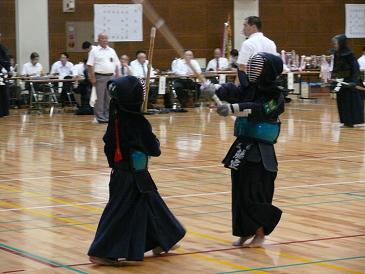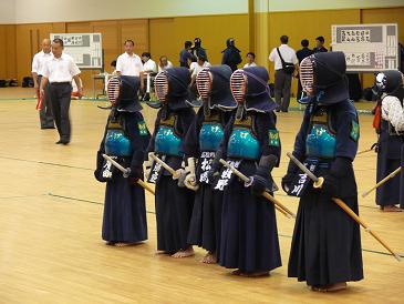 この大会は、全国大会の県代表を決める大会も兼ねており、基本錬成と1分1本勝負の戦いです。