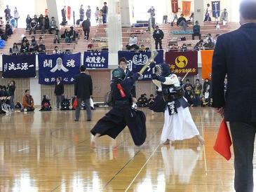 相手中堅の出コテを抜き、開始早々にメンを1本先取!